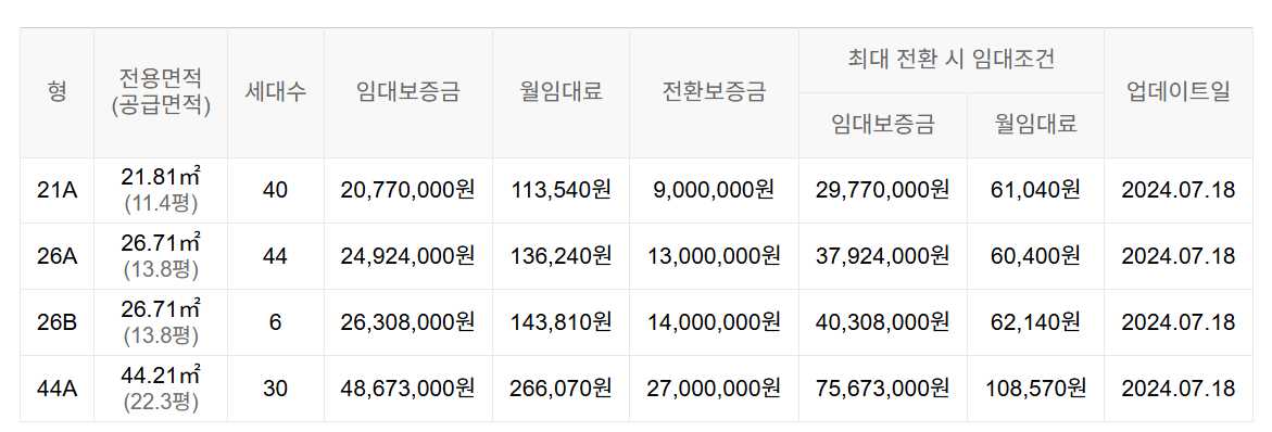임대보증금 및 월 임대료는 입주자 모집공고일 기준이며, 보증금 최대 전환 시 변동될 수 있습니다.