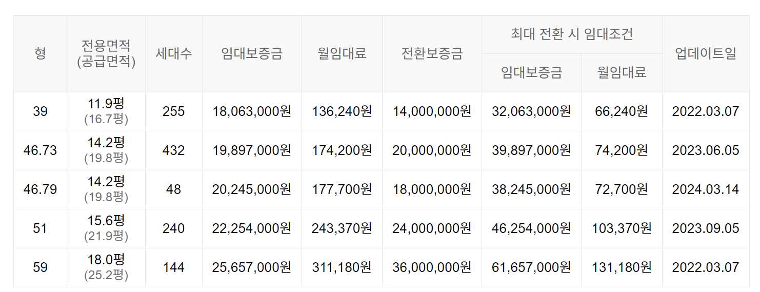 임대보증금 및 월 임대료는 입주자 모집공고일 기준이며, 보증금 최대 전환 시 변동될 수 있습니다.