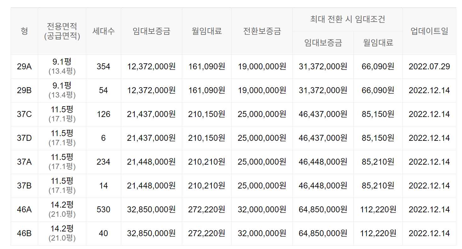 임대보증금 및 월 임대료는 입주자 모집공고일 기준이며, 보증금 최대 전환 시 변동될 수 있습니다.