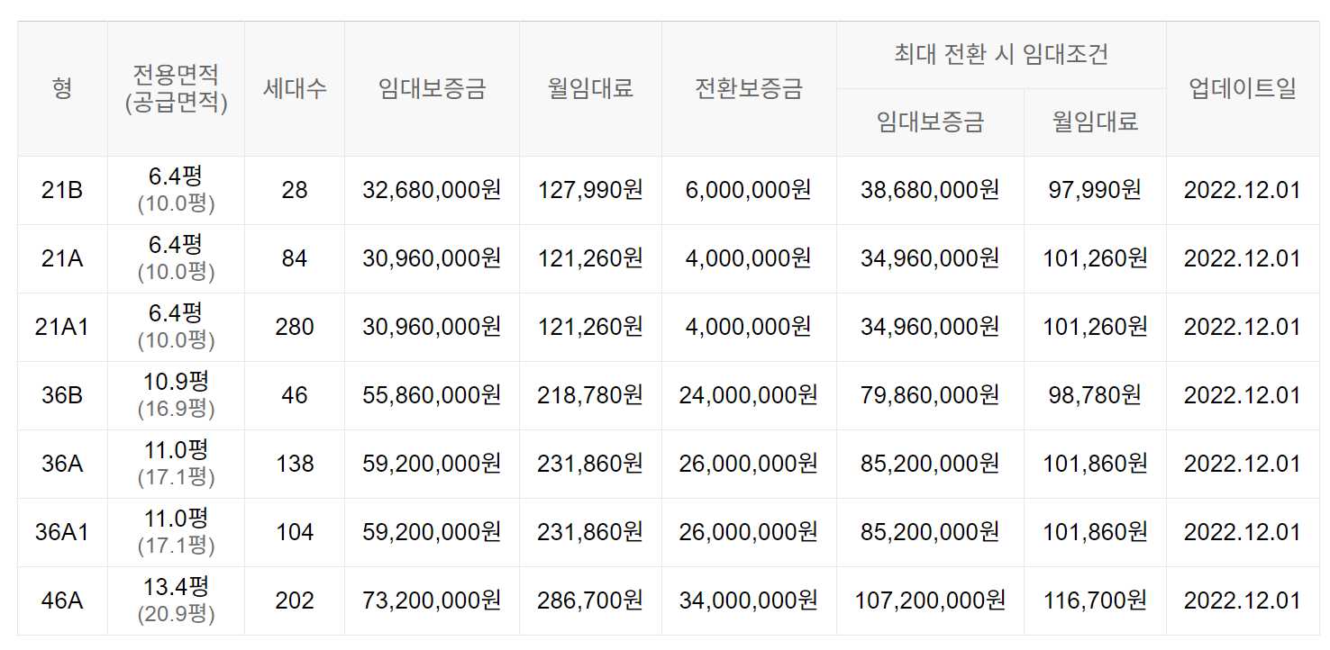 임대보증금 및 월 임대료는 입주자 모집공고일 기준이며, 보증금 최대 전환 시 변동될 수 있습니다.