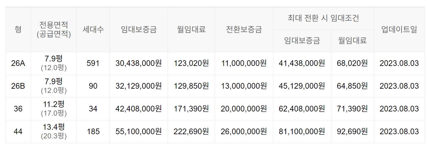 임대보증금 및 월 임대료는 입주자 모집공고일 기준이며, 보증금 최대 전환 시 변동될 수 있습니다.