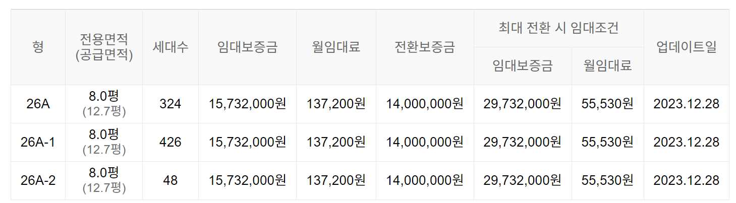 임대보증금 및 월 임대료는 입주자 모집공고일 기준이며, 보증금 최대 전환 시 변동될 수 있습니다.