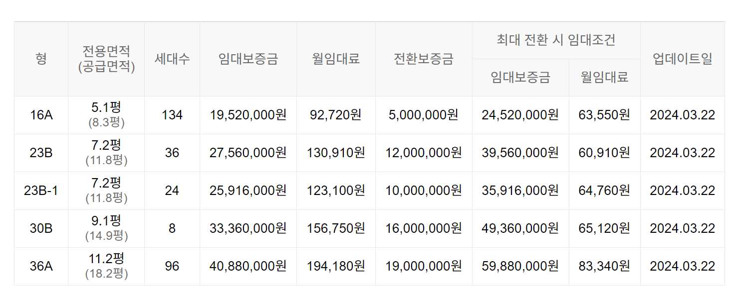 임대보증금 및 월 임대료는 입주자 모집공고일 기준이며, 보증금 최대 전환 시 변동될 수 있습니다.