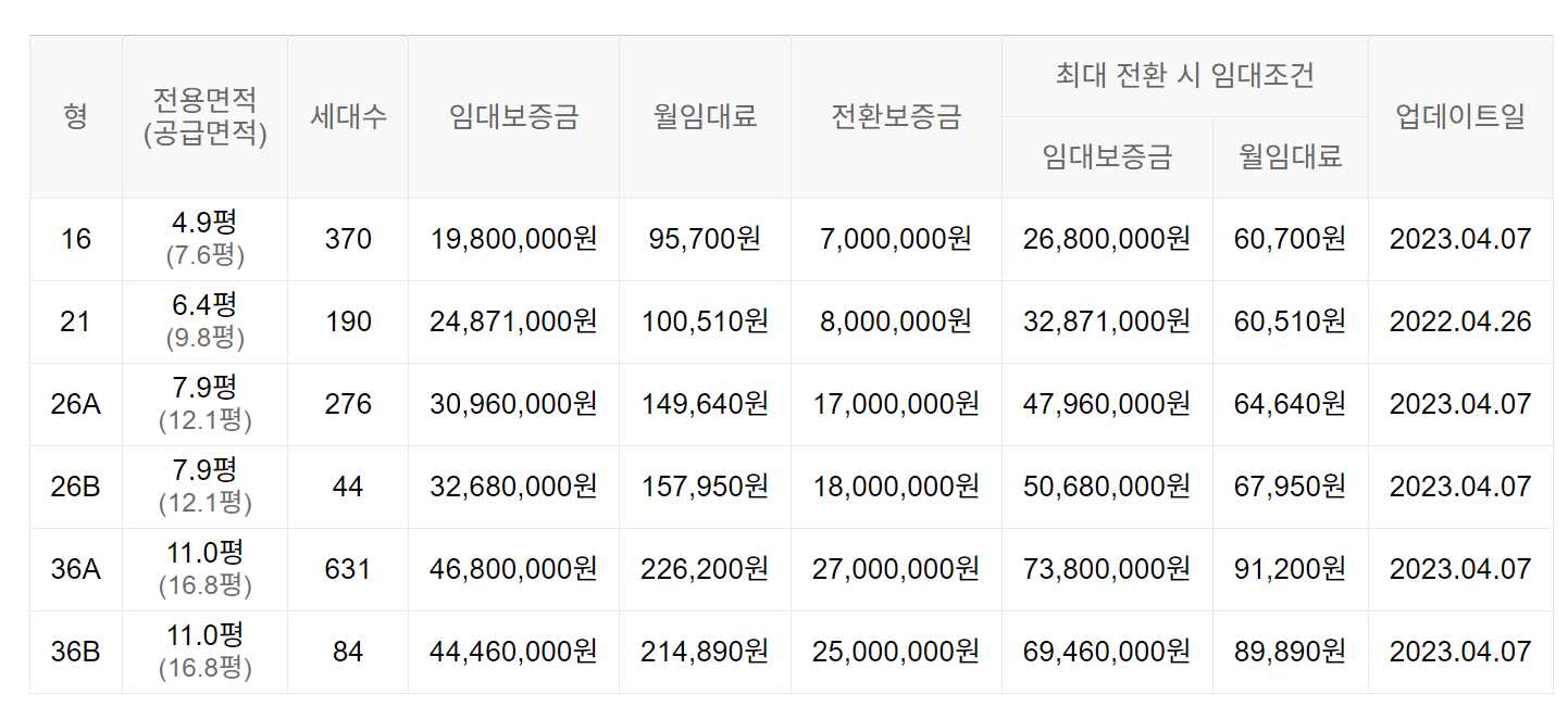임대보증금 및 월 임대료는 입주자 모집공고일 기준이며, 보증금 최대 전환 시 변동될 수 있습니다.