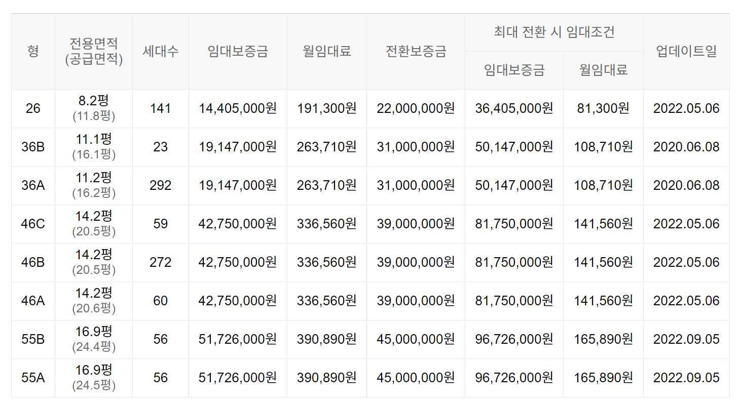 임대보증금 및 월 임대료는 입주자 모집공고일 기준이며, 보증금 최대 전환 시 변동될 수 있습니다.