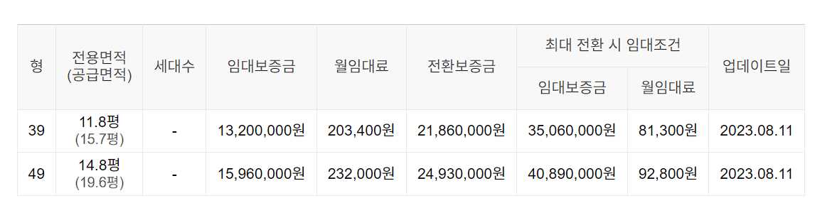임대보증금 및 월 임대료는 입주자 모집공고일 기준이며, 보증금 최대 전환 시 변동될 수 있습니다.