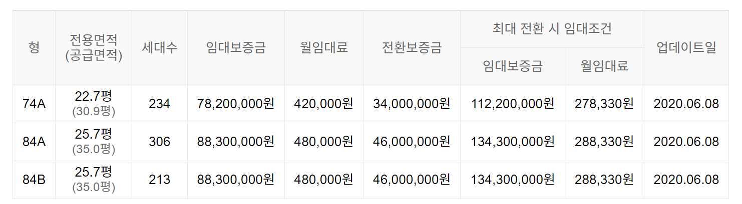임대보증금 및 월 임대료는 입주자 모집공고일 기준이며, 보증금 최대 전환 시 변동될 수 있습니다.