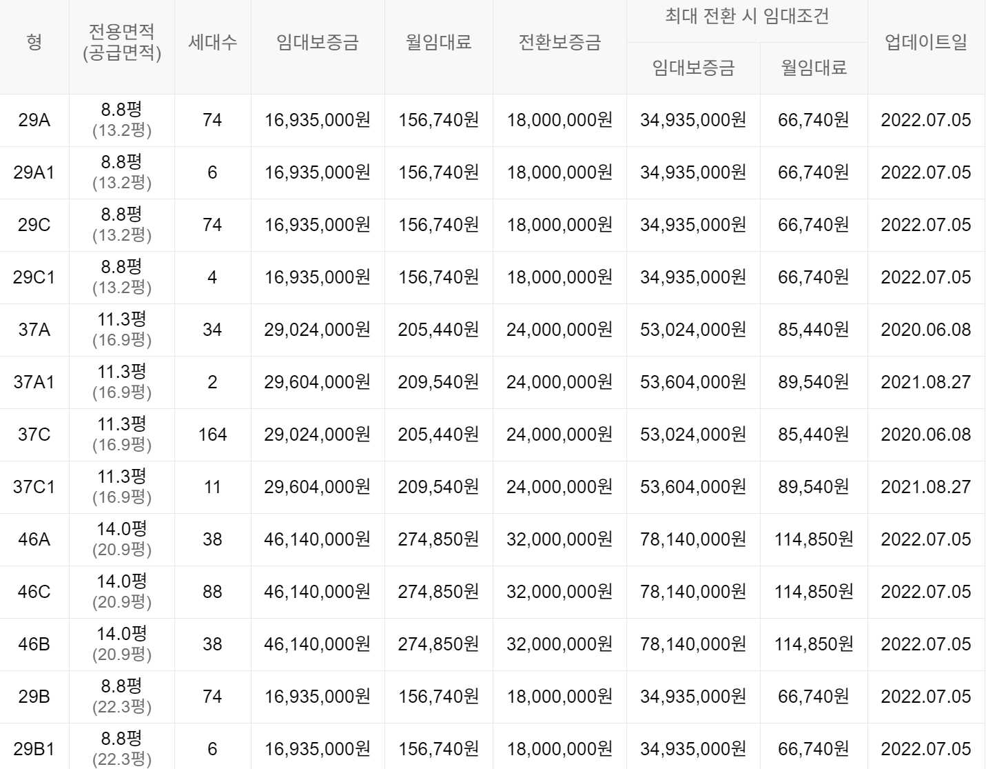 임대보증금 및 월 임대료는 입주자 모집공고일 기준이며, 보증금 최대 전환 시 변동될 수 있습니다.
