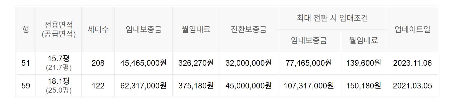 임대보증금 및 월 임대료는 입주자 모집공고일 기준이며, 보증금 최대 전환 시 변동될 수 있습니다.