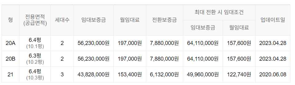 임대보증금 및 월 임대료는 입주자 모집공고일 기준이며, 보증금 최대 전환 시 변동될 수 있습니다.