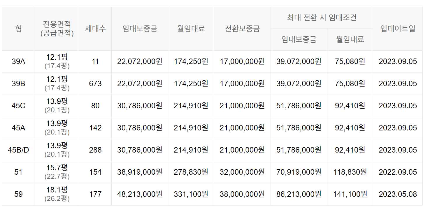 임대보증금 및 월 임대료는 입주자 모집공고일 기준이며, 보증금 최대 전환 시 변동될 수 있습니다.