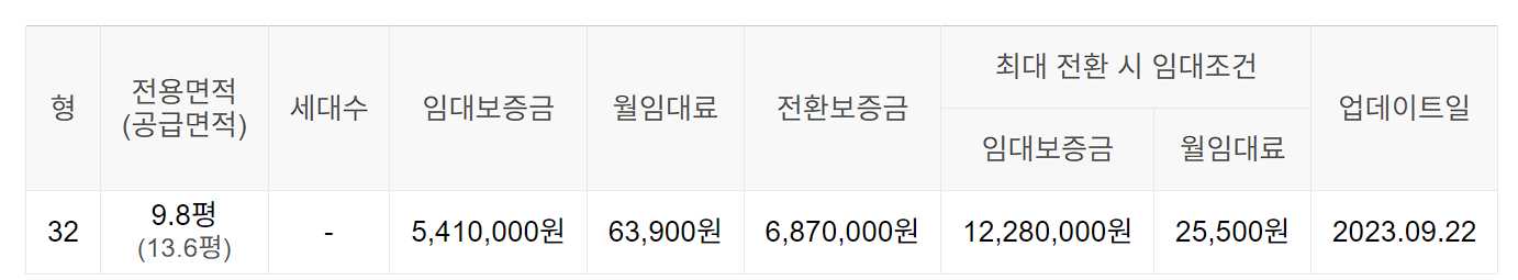 임대보증금 및 월 임대료는 입주자 모집공고일 기준이며, 보증금 최대 전환 시 변동될 수 있습니다.