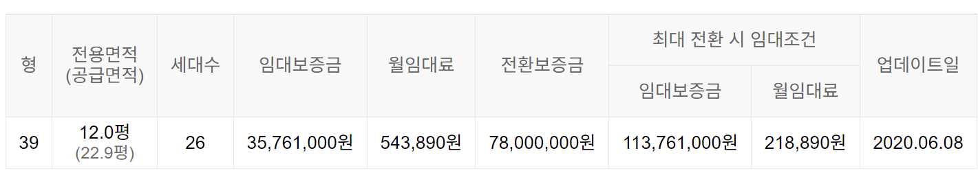 임대보증금 및 월 임대료는 입주자 모집공고일 기준이며, 보증금 최대 전환 시 변동될 수 있습니다.