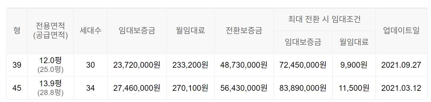 임대보증금 및 월 임대료는 입주자 모집공고일 기준이며, 보증금 최대 전환 시 변동될 수 있습니다.