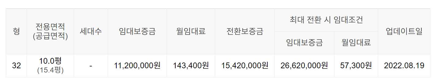 임대보증금 및 월 임대료는 입주자 모집공고일 기준이며, 보증금 최대 전환 시 변동될 수 있습니다.