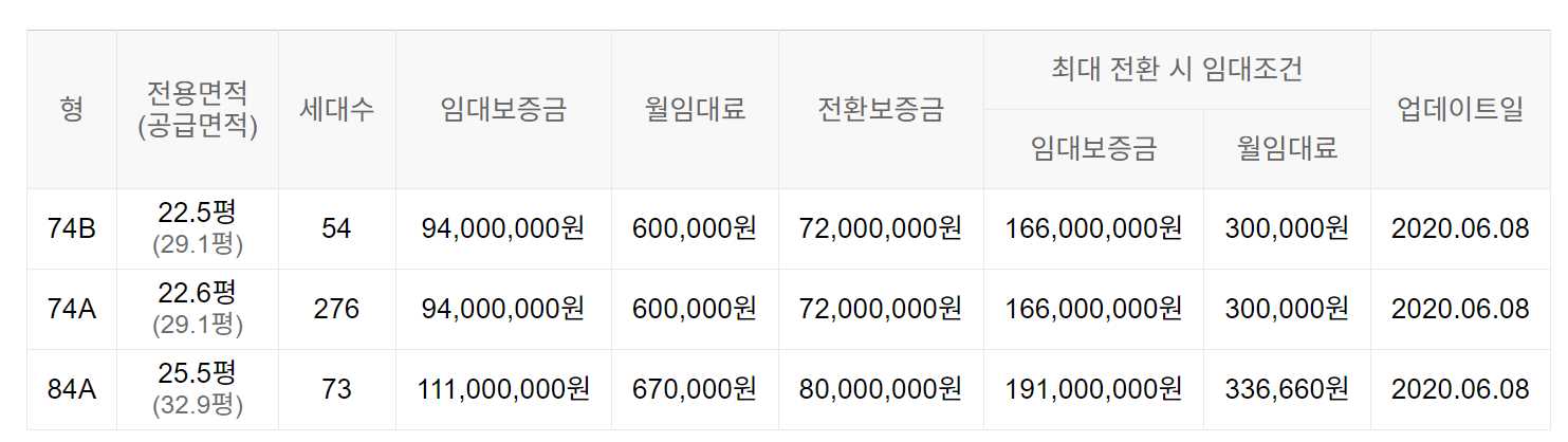 임대보증금 및 월 임대료는 입주자 모집공고일 기준이며, 보증금 최대 전환 시 변동될 수 있습니다.