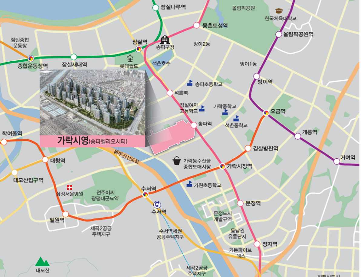 헬리오시티은 서울 송파구 송파역, 가락수산시장 근처에 위치하고 있습니다.