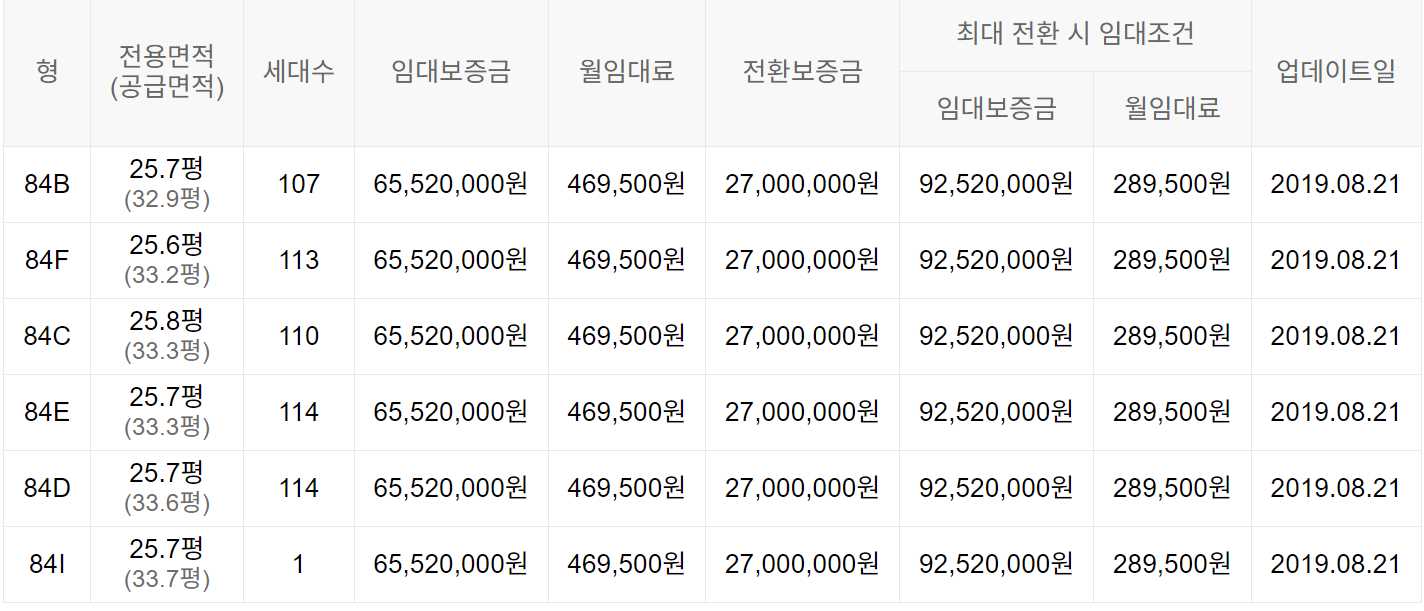 임대보증금 및 월 임대료는 입주자 모집공고일 기준이며, 보증금 최대 전환 시 변동될 수 있습니다.