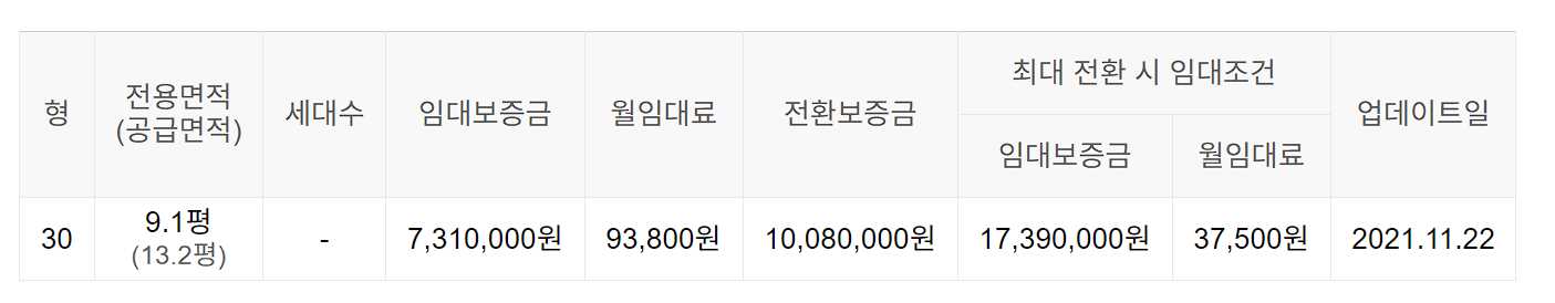 임대보증금 및 월 임대료는 입주자 모집공고일 기준이며, 보증금 최대 전환 시 변동될 수 있습니다.