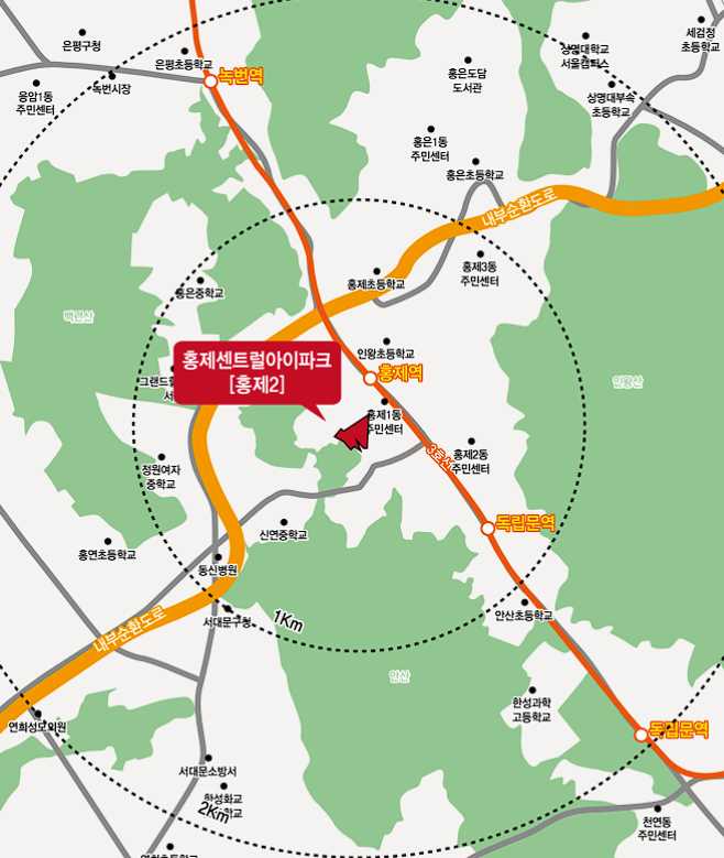 홍제센트럴아이파크는 서울 서대문구 무악재역, 홍제역 근처에 위치하고 있습니다.