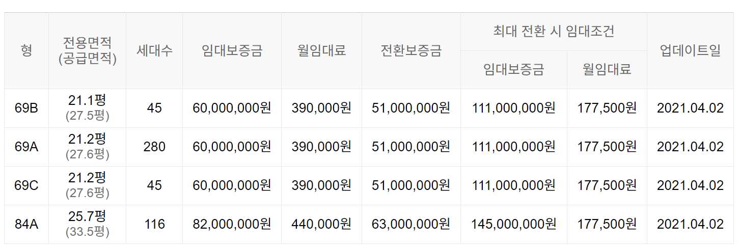 임대보증금 및 월 임대료는 입주자 모집공고일 기준이며, 보증금 최대 전환 시 변동될 수 있습니다.