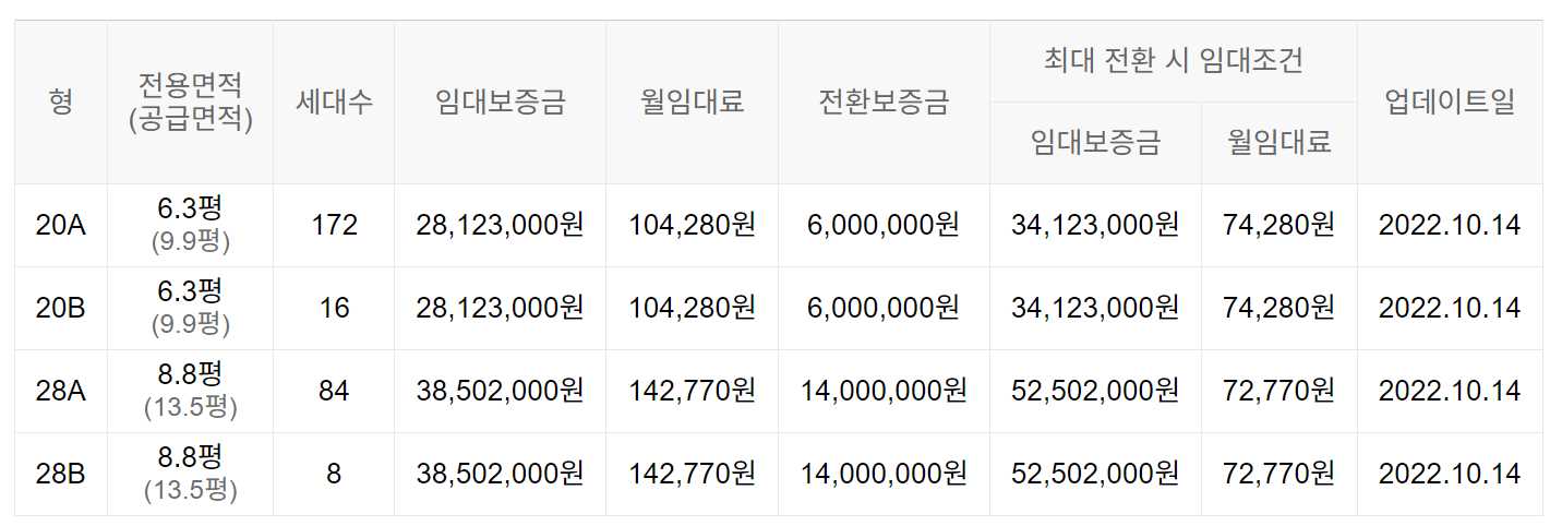 임대보증금 및 월 임대료는 입주자 모집공고일 기준이며, 보증금 최대 전환 시 변동될 수 있습니다.