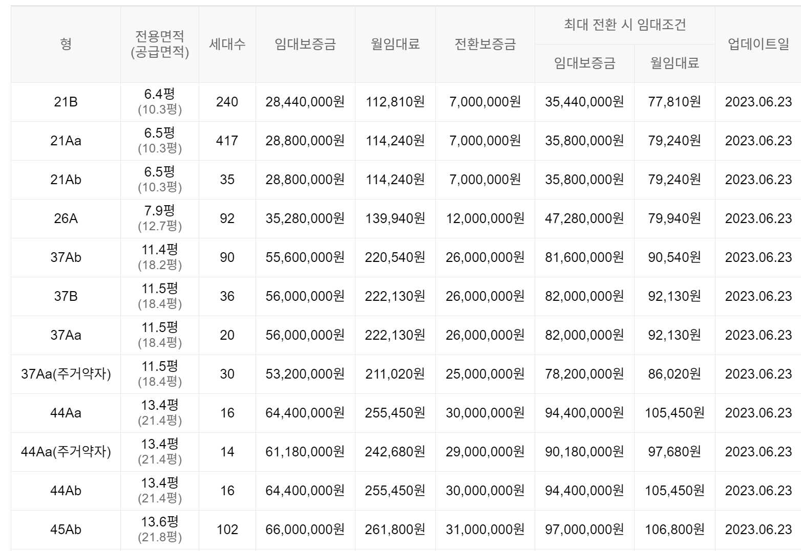 임대보증금 및 월 임대료는 입주자 모집공고일 기준이며, 보증금 최대 전환 시 변동될 수 있습니다.