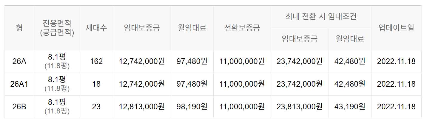 임대보증금 및 월 임대료는 입주자 모집공고일 기준이며, 보증금 최대 전환 시 변동될 수 있습니다.