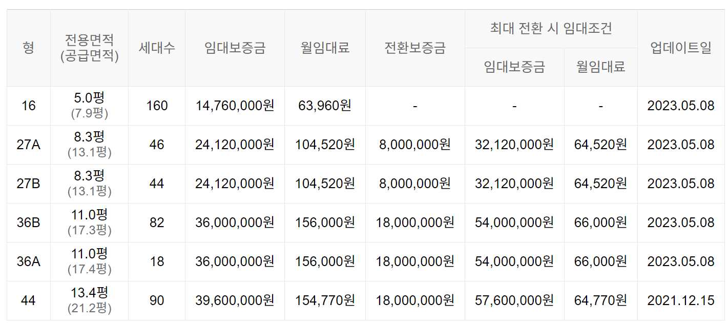임대보증금 및 월 임대료는 입주자 모집공고일 기준이며, 보증금 최대 전환 시 변동될 수 있습니다.