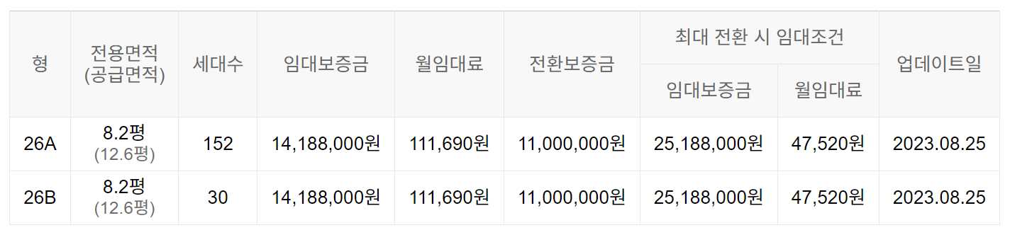 임대보증금 및 월 임대료는 입주자 모집공고일 기준이며, 보증금 최대 전환 시 변동될 수 있습니다.