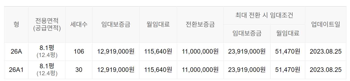 임대보증금 및 월 임대료는 입주자 모집공고일 기준이며, 보증금 최대 전환 시 변동될 수 있습니다.