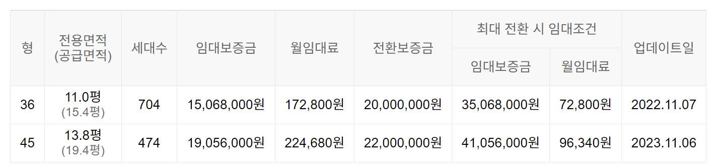 임대보증금 및 월 임대료는 입주자 모집공고일 기준이며, 보증금 최대 전환 시 변동될 수 있습니다.