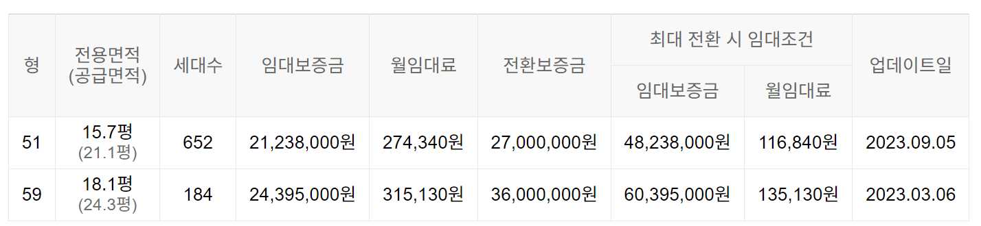 임대보증금 및 월 임대료는 입주자 모집공고일 기준이며, 보증금 최대 전환 시 변동될 수 있습니다.