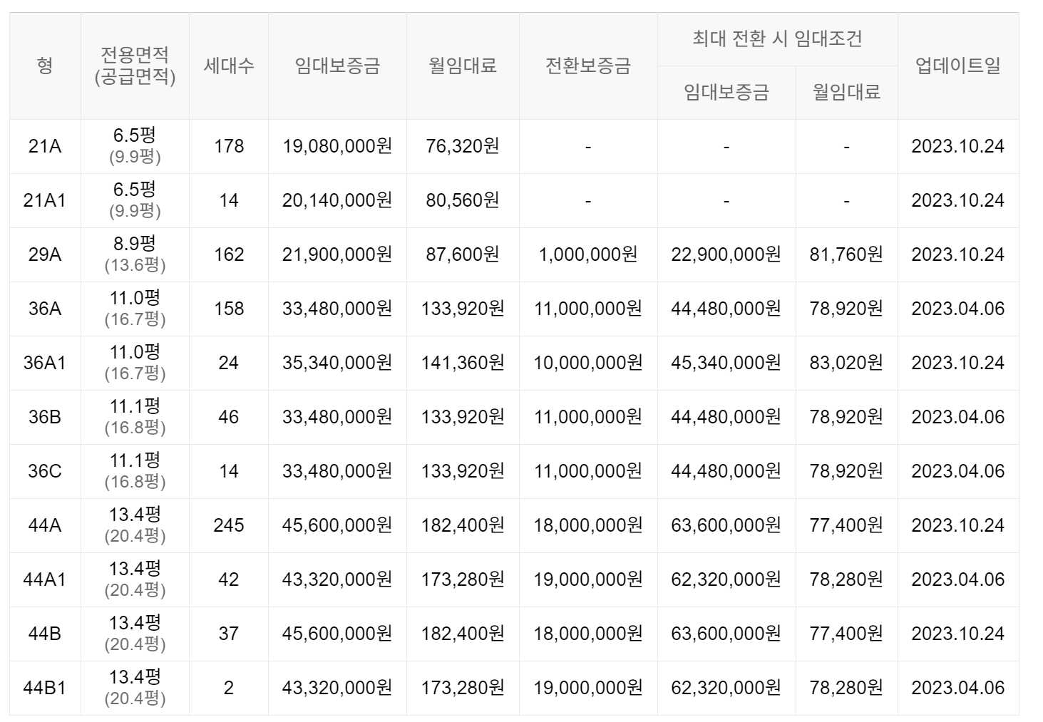 임대보증금 및 월 임대료는 입주자 모집공고일 기준이며, 보증금 최대 전환 시 변동될 수 있습니다.