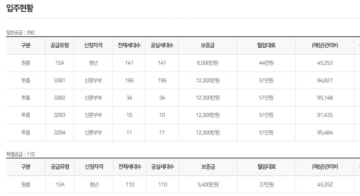 임대보증금 및 월 임대료는 입주자 모집공고일 기준이며, 보증금 최대 전환 시 변동될 수 있습니다.