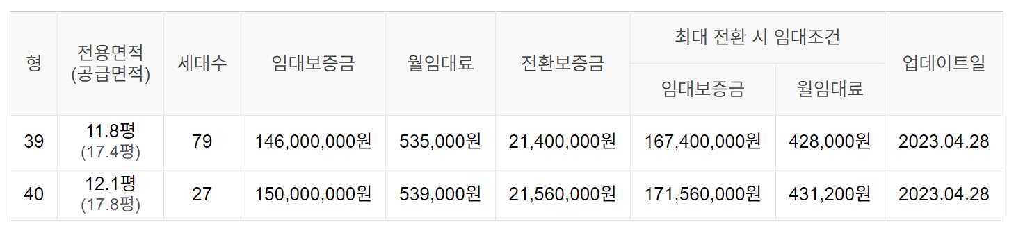 임대보증금 및 월 임대료는 입주자 모집공고일 기준이며, 보증금 최대 전환 시 변동될 수 있습니다.