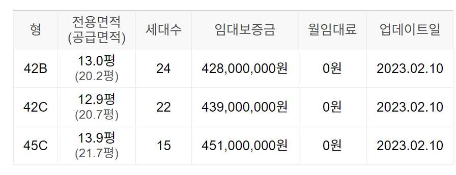 임대보증금 및 월 임대료는 입주자 모집공고일 기준이며, 보증금 최대 전환 시 변동될 수 있습니다.