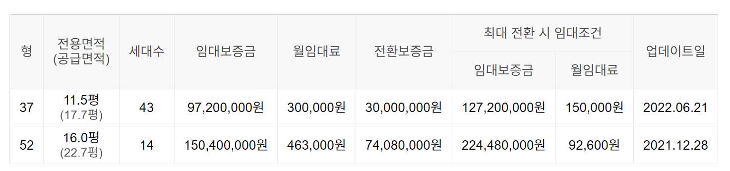 임대보증금 및 월 임대료는 입주자 모집공고일 기준이며, 보증금 최대 전환 시 변동될 수 있습니다.