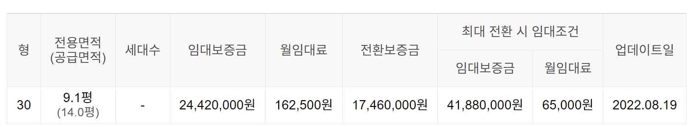 임대보증금 및 월 임대료는 입주자 모집공고일 기준이며, 보증금 최대 전환 시 변동될 수 있습니다.