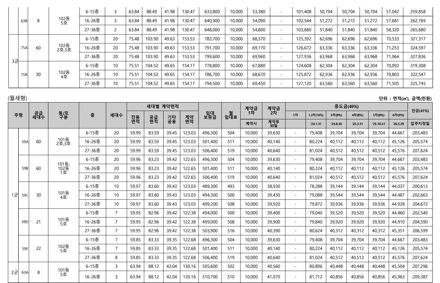 임대보증금 및 월 임대료는 입주자 모집공고일 기준이며, 보증금 최대 전환 시 변동될 수 있습니다.