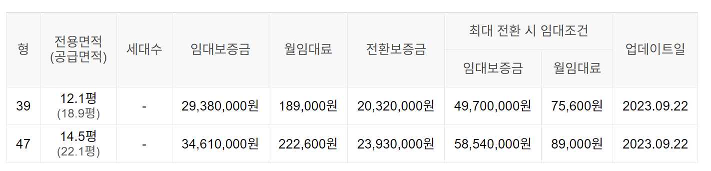 임대보증금 및 월 임대료는 입주자 모집공고일 기준이며, 보증금 최대 전환 시 변동될 수 있습니다.