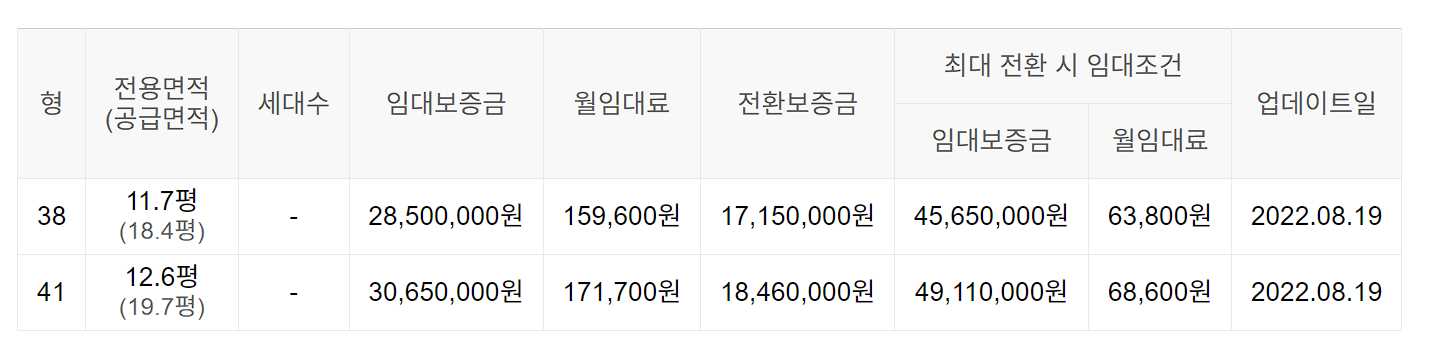 임대보증금 및 월 임대료는 입주자 모집공고일 기준이며, 보증금 최대 전환 시 변동될 수 있습니다.
