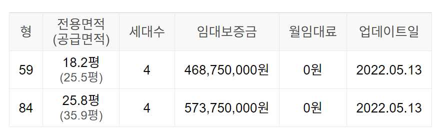 임대보증금 및 월 임대료는 입주자 모집공고일 기준이며, 보증금 최대 전환 시 변동될 수 있습니다.
