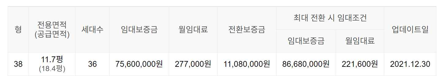 임대보증금 및 월 임대료는 입주자 모집공고일 기준이며, 보증금 최대 전환 시 변동될 수 있습니다.