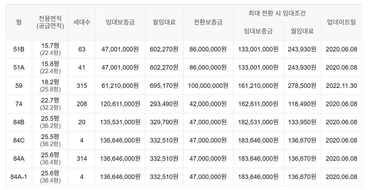 임대보증금 및 월 임대료는 입주자 모집공고일 기준이며, 보증금 최대 전환 시 변동될 수 있습니다.
