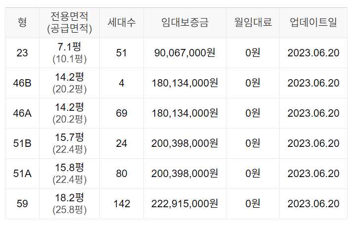 임대보증금 및 월 임대료는 입주자 모집공고일 기준이며, 보증금 최대 전환 시 변동될 수 있습니다.