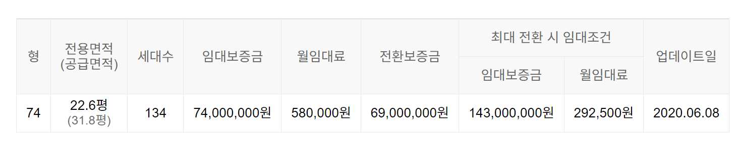 임대보증금 및 월 임대료는 입주자 모집공고일 기준이며, 보증금 최대 전환 시 변동될 수 있습니다.