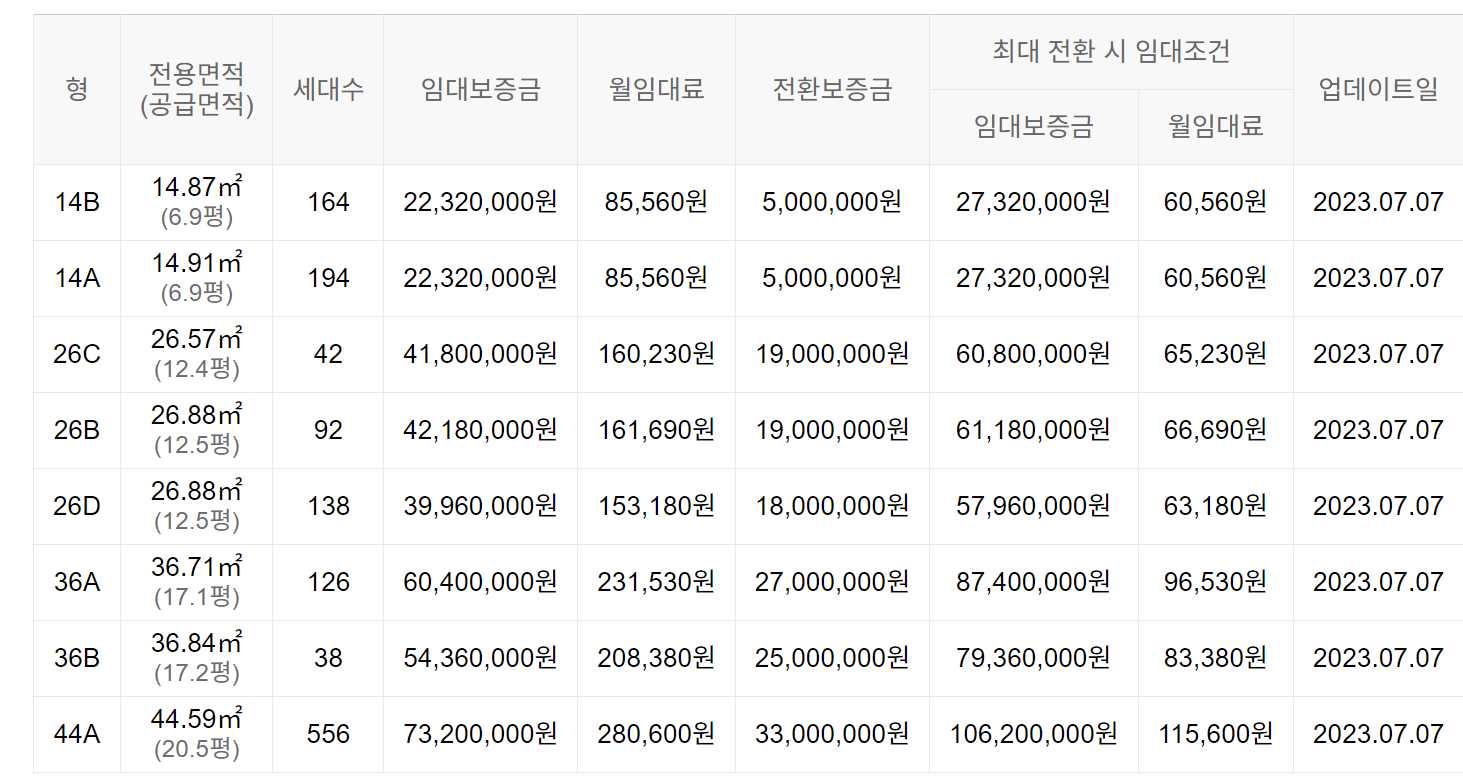 임대보증금 및 월 임대료는 입주자 모집공고일 기준이며, 보증금 최대 전환 시 변동될 수 있습니다.