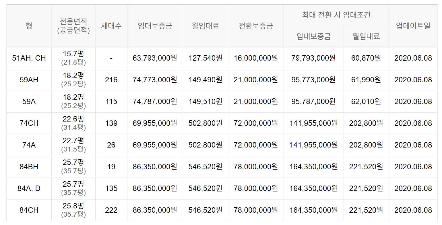 임대보증금 및 월 임대료는 입주자 모집공고일 기준이며, 보증금 최대 전환 시 변동될 수 있습니다.