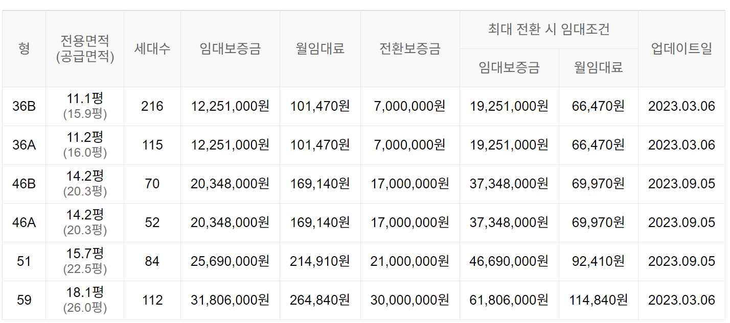 임대보증금 및 월 임대료는 입주자 모집공고일 기준이며, 보증금 최대 전환 시 변동될 수 있습니다.